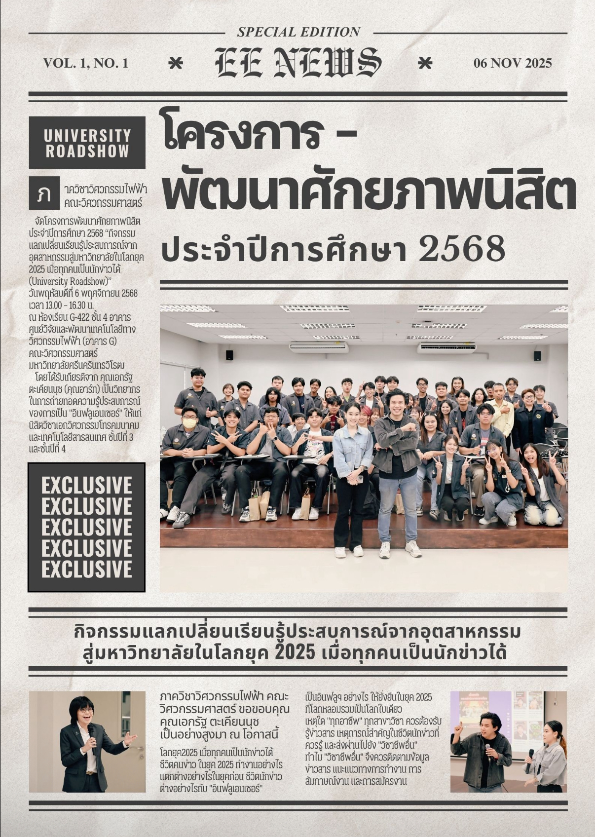 “กิจกรรมแลกเปลี่ยนเรียนรู้ประสบการณ์จากอุตสาหกรรมสู่มหาวิทยาลัยในโลกยุค 2025 เมื่อทุกคนเป็นนักข่าวได้ (University Roadshow)”